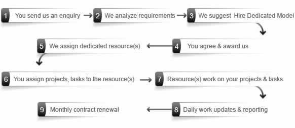 You can hire web developers from us as we have profound knowledge based professionals in PHP, ASP.NET, C#, Vb.net. If you need web developers for longer period and looking for resource retention, then this is the best option for you. Our this service gives you full freedom in hire and selection of developers and, your selected Dedicated Developers work exclusively for you on your specified projects at just affordable fixed monthly fees.