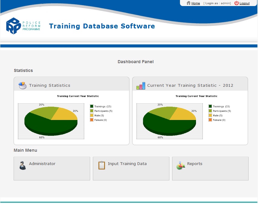 This is Database software for Police Reform Programme (PRP). By this system PRP Authority can manage all Training that provided to Police, NGO personnel and others. By this software PRP authority will get total information by the single (mouse) click like date wise (Daily, Monthly, Quarterly, Half-yearly and yearly) number of trainees received services from PRP by the extensive reporting system.